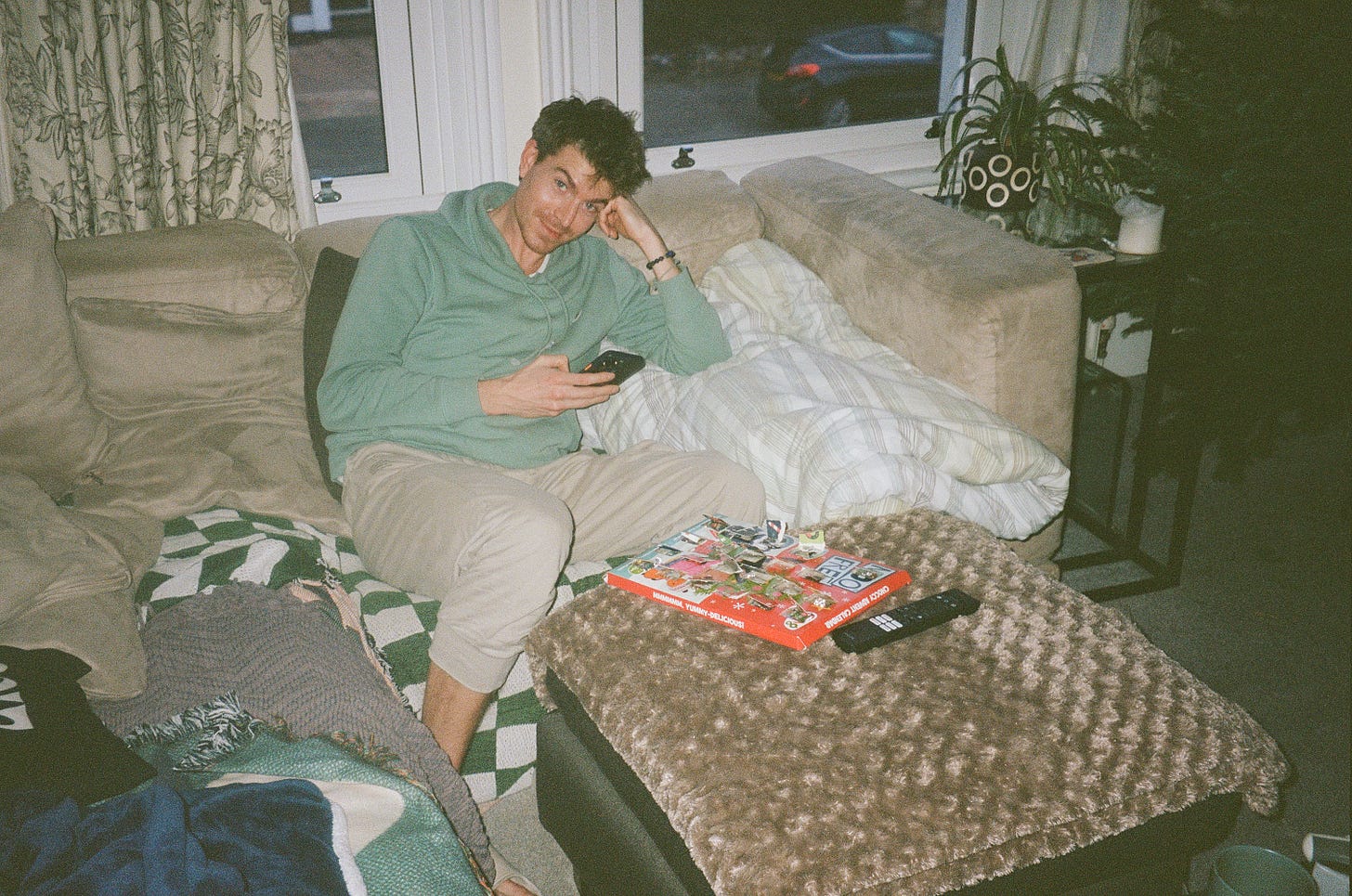 I also like to capture moments that would otherwise be quite forgettable but extremely human. Like when I walked in on Matt, my most health-conscious friend, after he’d just polished off his entire advent calendar three weeks early. Or when Sip brought everything but the bud. Not unlike him.